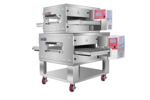 Principle Bakers Rock G-Series electric model conveyor ovens, is composed of one or more stack-able baking chambers and an optional stand. During baking, the product is placed on the stainless steel 304 conveyor belt and passes through two flows of hot air : impingement technology , the best system for heat distribution in the whole baking chamber for perfect baking of pizza, pastry, seafood, sandwiches, bagels, ethnic foods and more. Management of needed power is automatic according to the load.